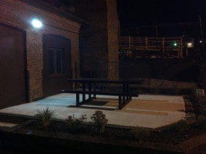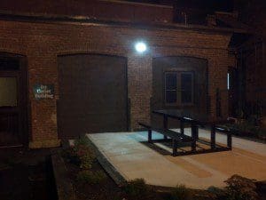 The renovations to this historic Worcester building are incredible. The interior space is hardly recognizable from the days when it was a corset factory. One of the most noticeable changes to the exterior space are the LED wallpacks lining the street front side of the building, and the brand new patio space out back.