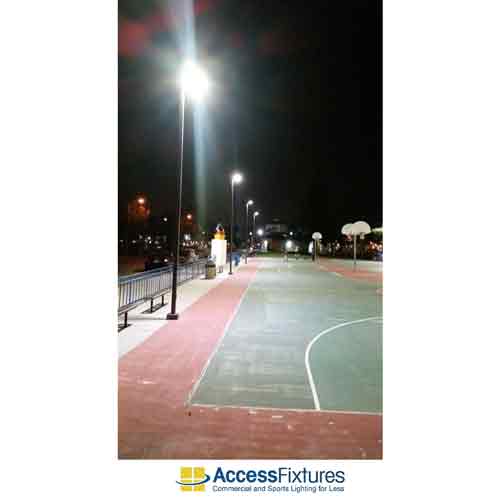 Access Fixtures has had tremendous success with the four-pole LED basketball court solution. Previous customers have been thrilled with the efficiency and consistency of these LED luminaires over time. The 378w High Output LED fixtures in the package are L70 rated for 100,000 hours and provide a stunning 53,172 lumens. It has become a foolproof solution for the kind of recreational play public parks hope to facilitate.