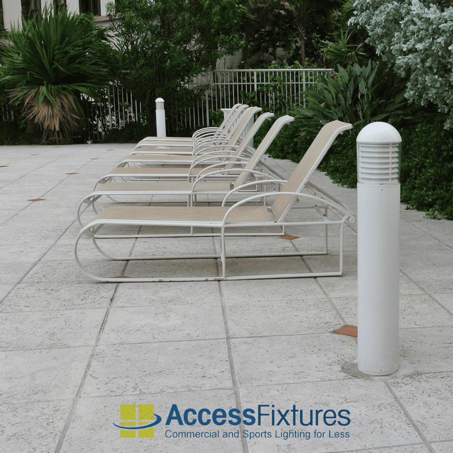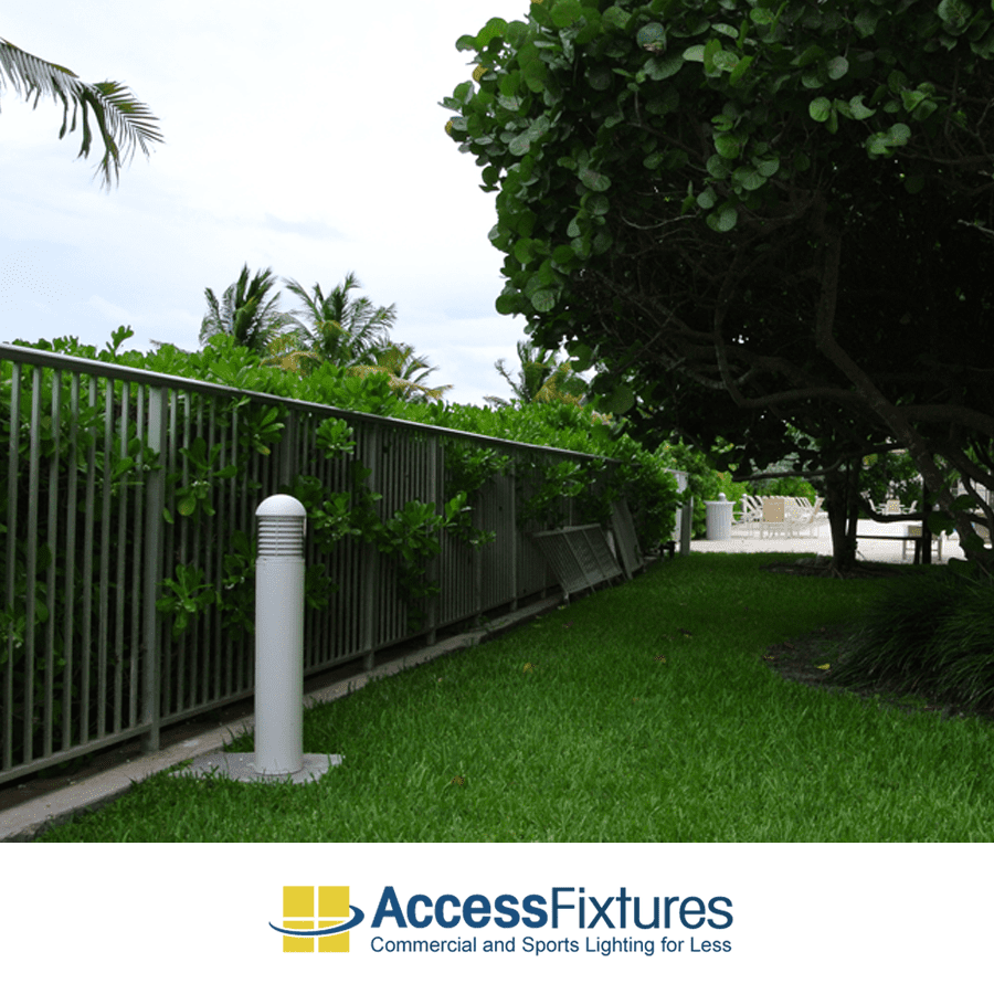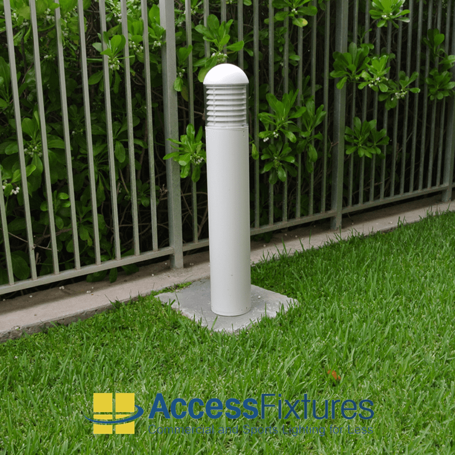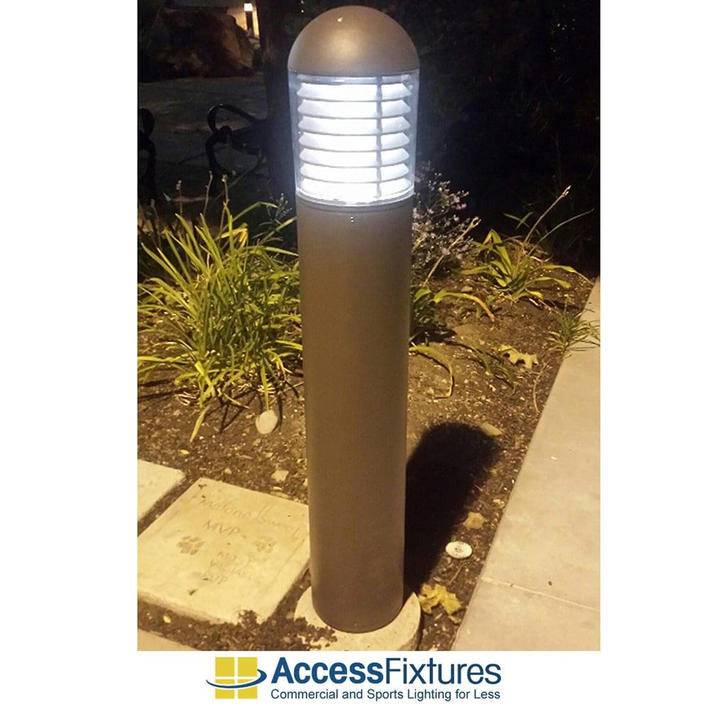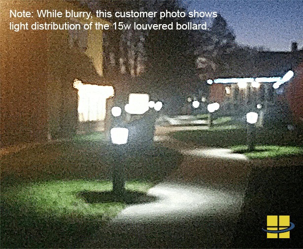 Louvered Optics: This bollard light reflects light downward, reducing glare for pedestrians and drivers.