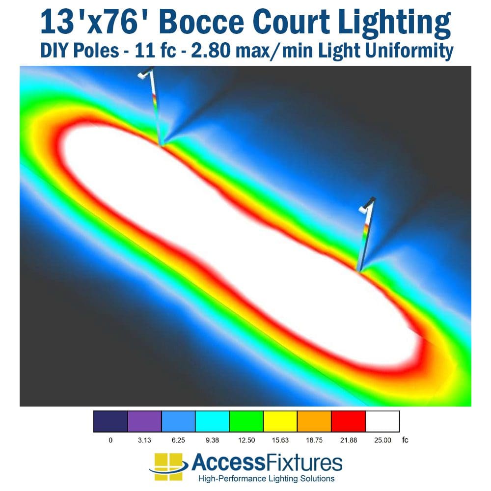 Bocce LED Lighting 13′ x 76′ Court – 12 fc 2.80 max/min – POLES NOT INCLUDED