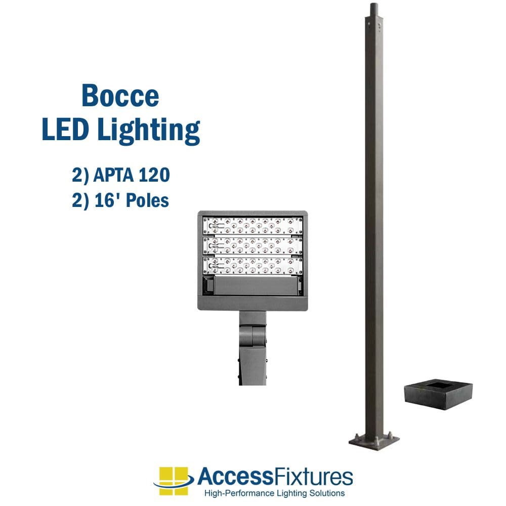Bocce LED Lighting with 2 Poles 13′ x 76′ Court – 11 fc 2.80 max/min
