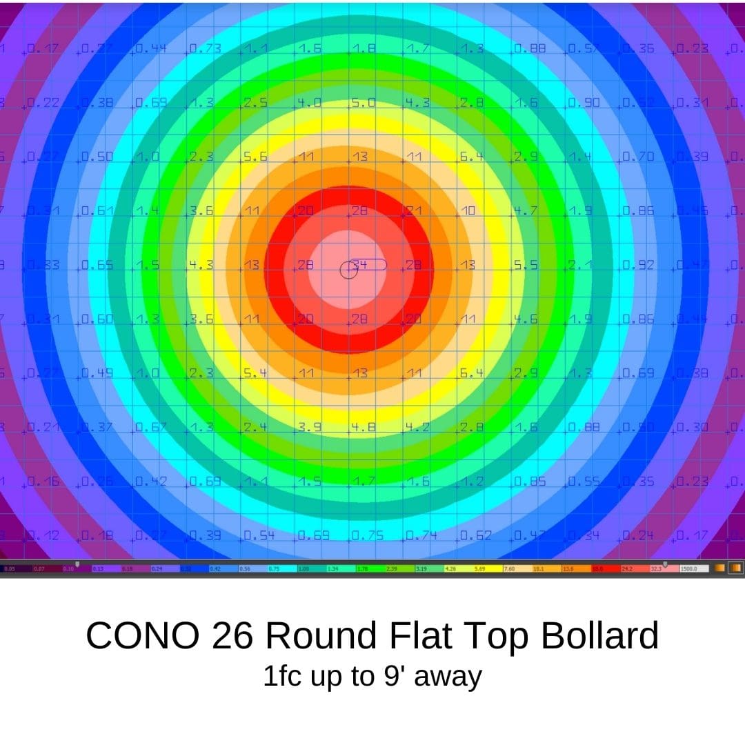 CONO 26 Round Flat Top Bollard Light, Selectable Kelvin, 120-277v
