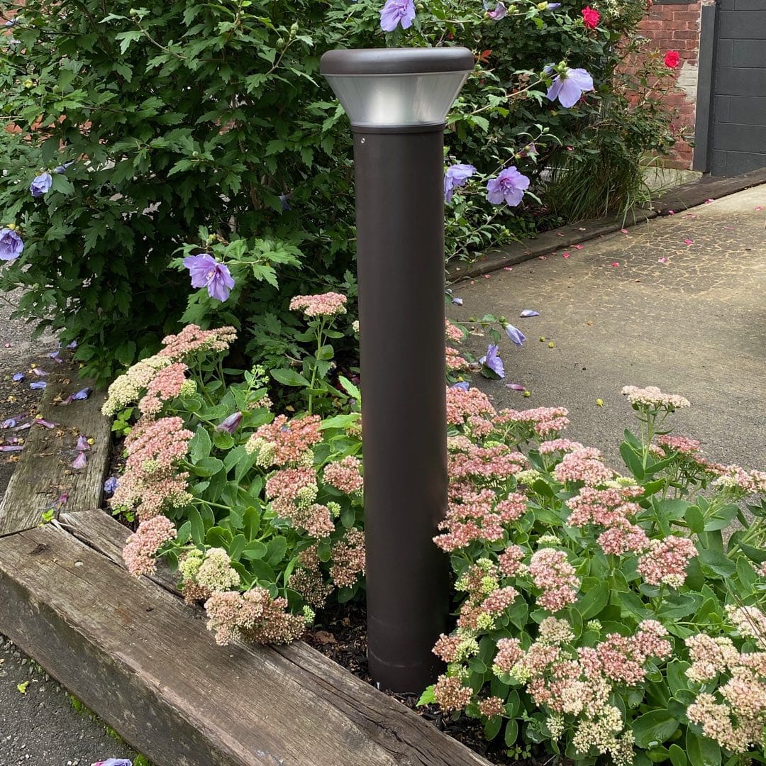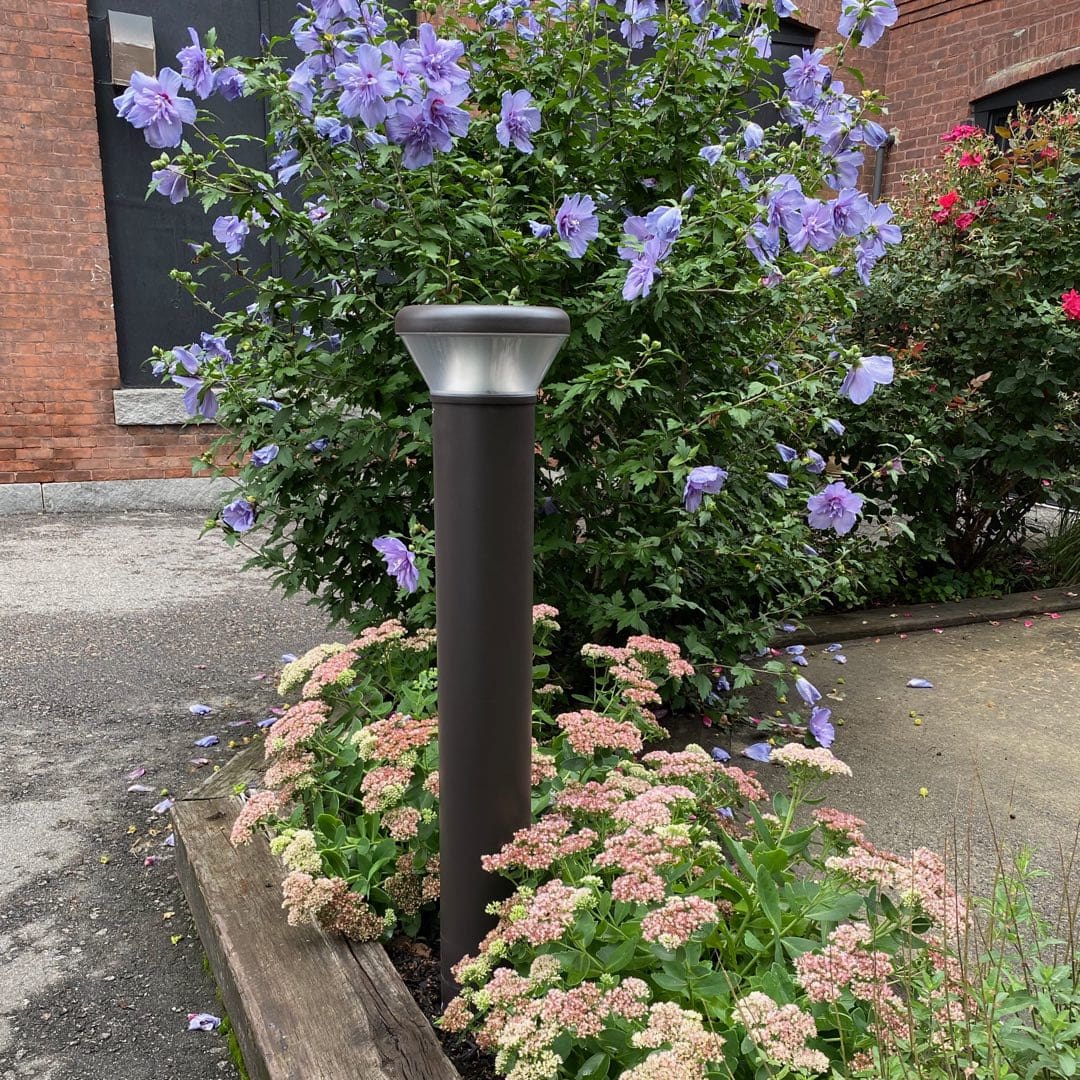 Far-Reaching Optics: This bollard light distributes 1 footcandle up to 9′ away.