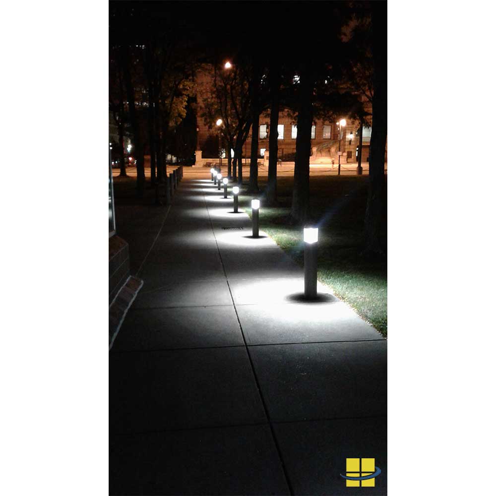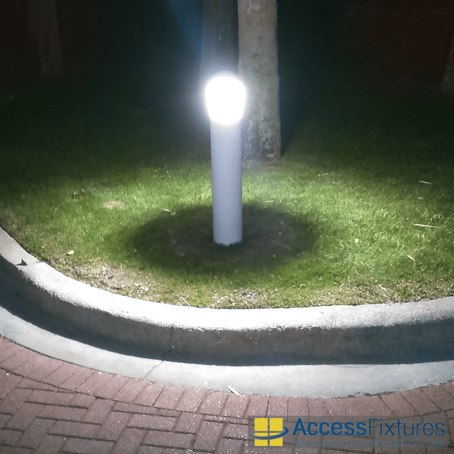 Louvered Optics: This bollard light reflects light downward, reducing glare for pedestrians and drivers.