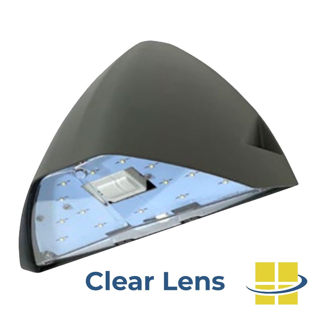 Lens Choice: TRID wall pack comes with a choice of a clear molded UV-stabilized polycarbonate lens or a SoftLED LumaLens opal UV-stabilized polycarbonate array lens