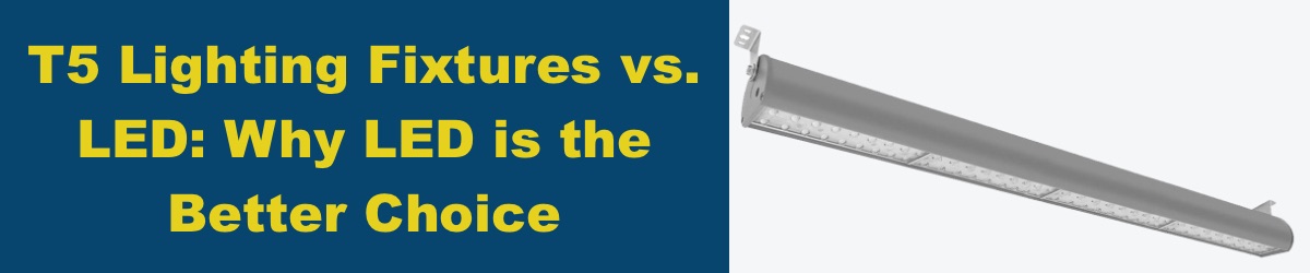 While T5 fixtures are efficient and produce excellent light output, LED fixtures typically last longer, use less energy (saving 45%-65% on energy costs), and are more environmentally friendly due to being mercury-free. LEDs also usually have higher lumens per watt and come with stronger warranties.